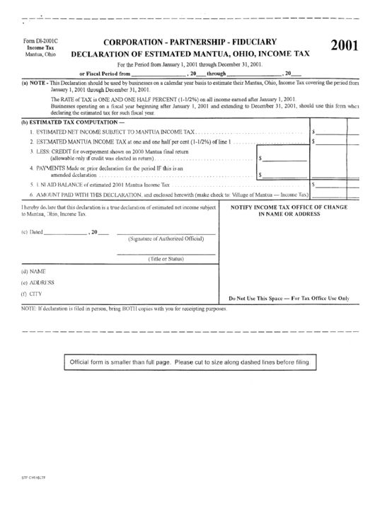 Form Di2001c Declaration Of Estimated Mantua, Ohio, Tax