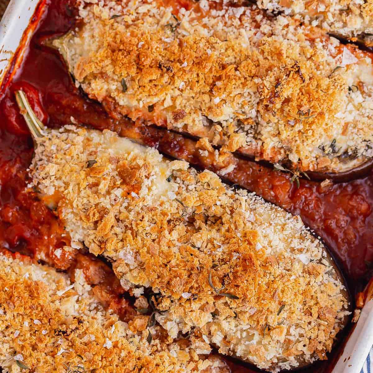 Cheesy Roasted Aubergine with Breadcrumbs • The Cook Report