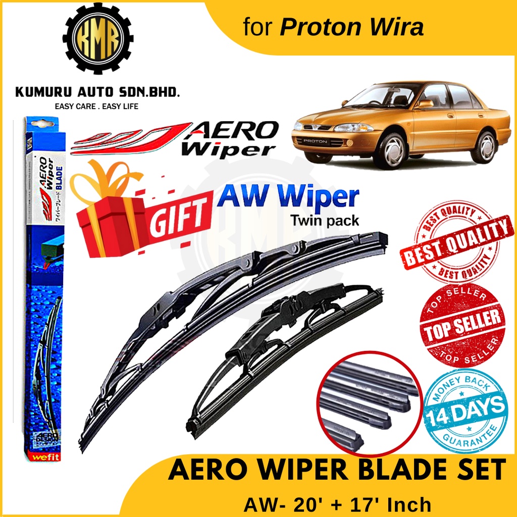 1 Set PROTON WIRA AERO WIPER BLADE SET (AW) ECONOMY TWIN Set (UHook Type) 20/17 Inch