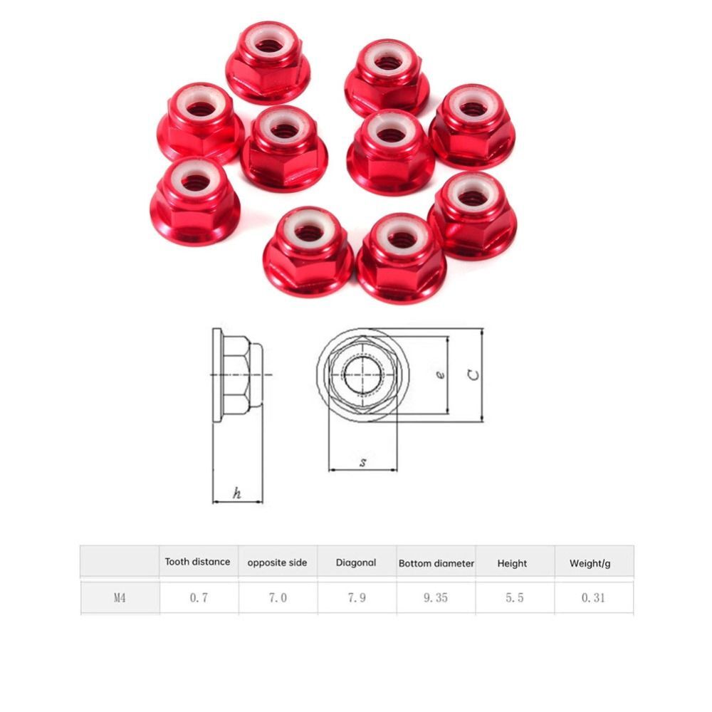 10PC M4 Aluminum Flanged Nylon Insert Lock Nut Blue Red Gold Black Aluminum Alloy Nylon Lock Nut Hold bearings, bushings, pulleys, and gears in place on threaded shafts and spindles. Aluminium nyloc nuts are economic locking nuts which are ideal within applications where motion or vibration could loosen or undo the nut. Nylon lock nuts are a subtype of prevailing torque nuts, which means they are engineered to maintain a consistent level of friction between the nut. Aluminum Alloy Nylon Lock Nut.