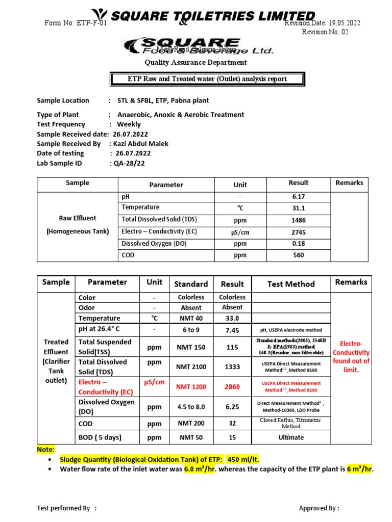 ETP Water Analysis Report PDF Hydrology Water Supply