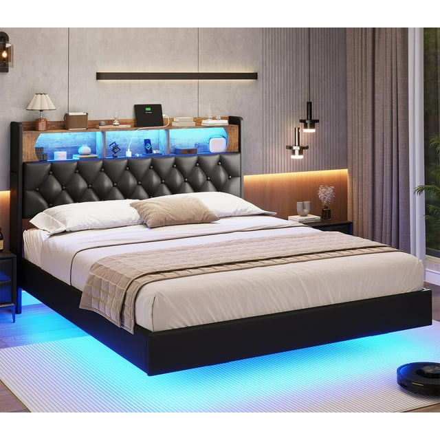 【stable & durable frame construction】dictac floating queen led bed frame with headboard is constructed of solid metal. shop whizmax platform floating bed frame with led lights, modern upholstered low profile queen size bed with wingback. our queen size floating bed frame consists of a headboard and a bed frame with two tiers and an electrical outlet designed into. you'll love the wrought studio floating bed frame queen size with led lights, metal platform queen bed, no box spring.
