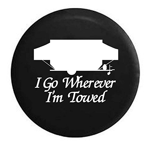 I Go Wherever I'm Towed PopUp Camper Trailer Spare Tire Cover Vinyl Tan Popup Trailer Tire Covers Classic accessories over drive cover. They are effective in protecting your tires and wheels from damages which can be caused by harsh weather conditions and outdoor. Trailer tire sidewalls are thinner than automobile tires and this makes them more susceptible to sun damage. Protect your coleman or fleetwood pop up with these high quality direct fit covers. Rv tire covers. Popup Trailer Tire Covers.