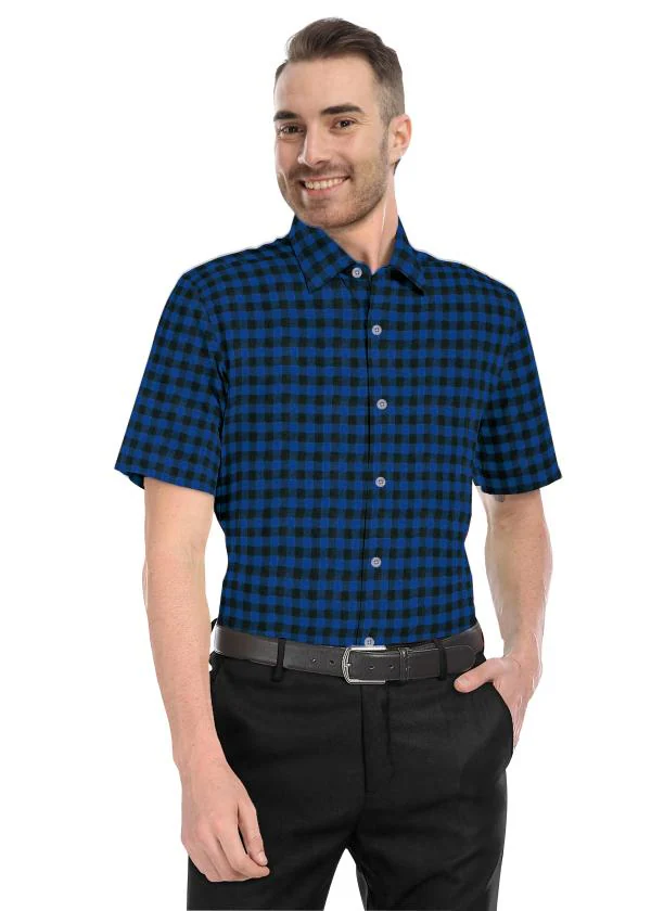 Genius Shirts 100 Cotton Check Formal Half Sleeve Shirt for Men Navy