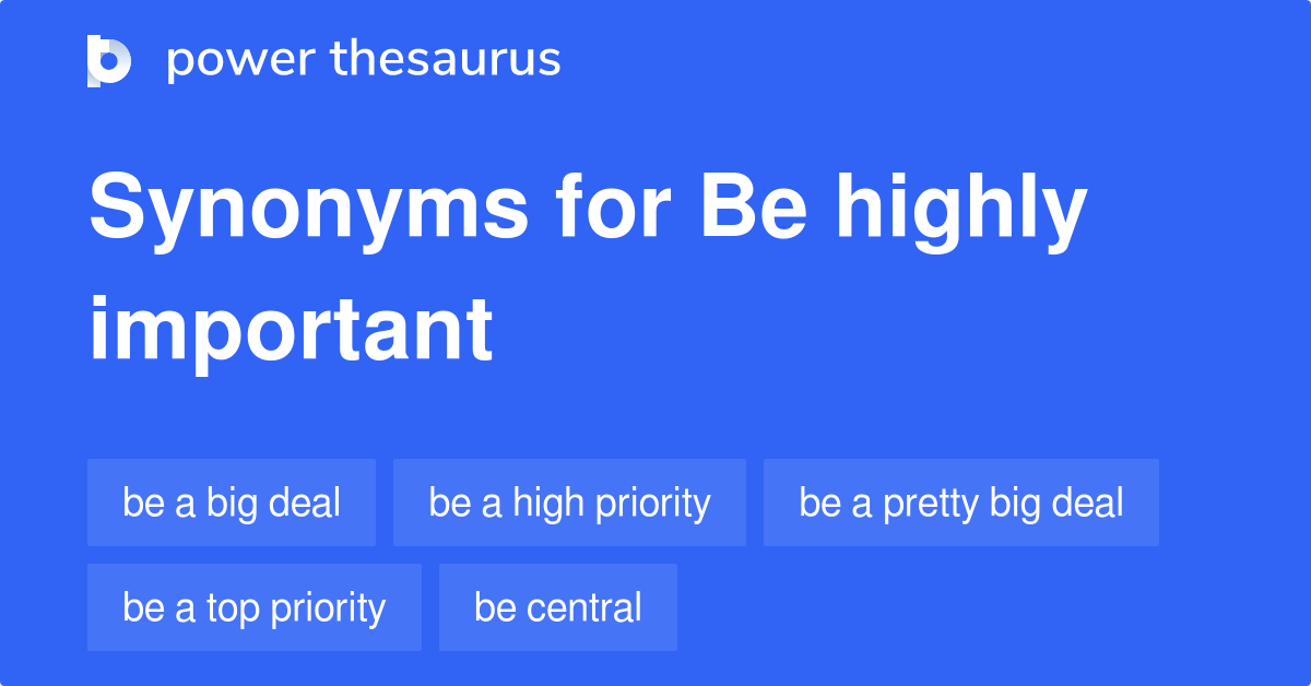 Dictionaries & Thesaurus Thesaurus Highly Important Find 624 synonyms for extremely important and other similar words that you can use instead based on 2 separate contexts from our. What's the definition of highly important in thesaurus? These are words and phrases related to most important. Find 4,273 synonyms for highly important and other similar words that you can use instead based on 19 separate contexts from. Thesaurus Highly Important.