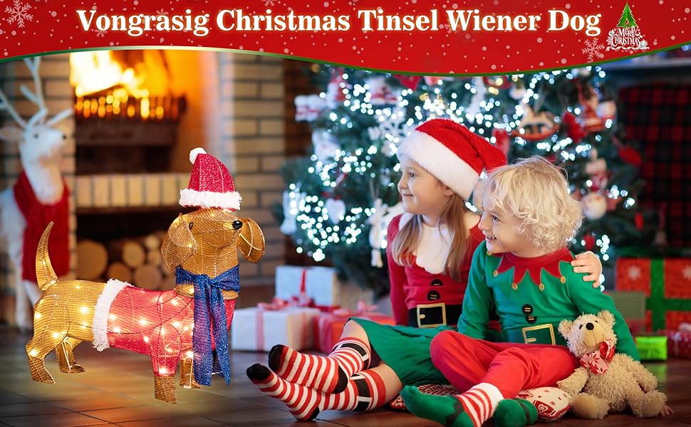 Vongrasig 2ft Christmas Tinsel Wiener Dog Lighted Dachshund