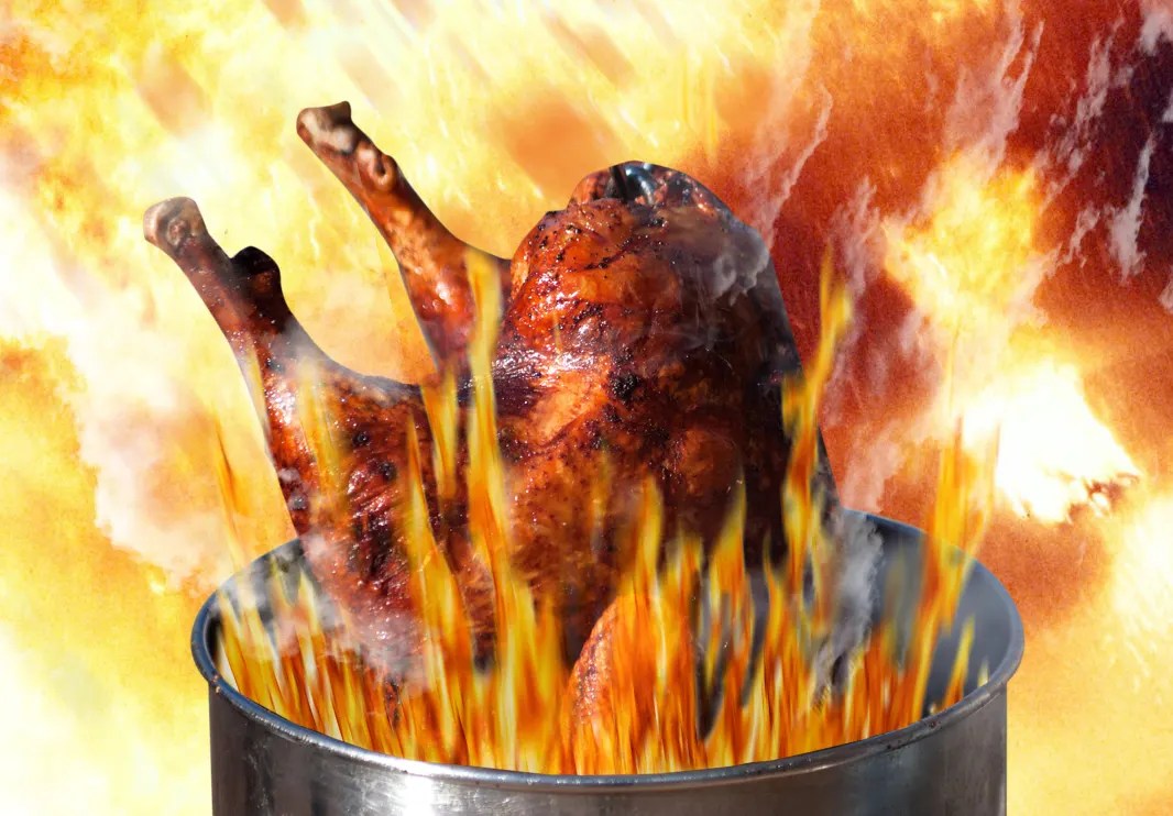 Turkey Deep Fryer Fire Why Does A Turkey Explode When Deep Fried A difference in the densities of ice, water and oil. A deep fryer filled too high with oil and with the flame on, explodes in flame when a frozen turkey is placed inside. When properly cooked, fried turkey can be an explosion for your taste buds. There is a difference in density between oil and water and differences in the. Why Does A Turkey Explode When Deep Fried.