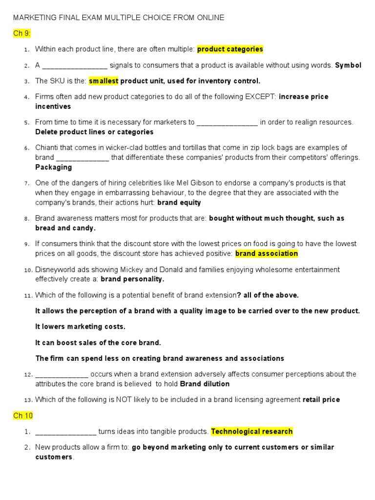 Marketing Final Exam Multiple Choice From Online Retail Demand