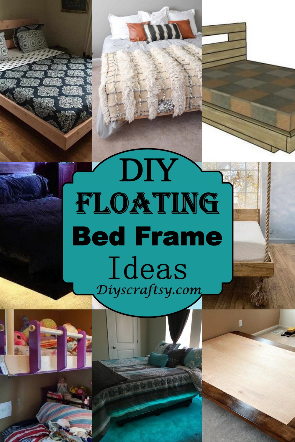 Floating bed frame, with tools and detailed steps. DIY