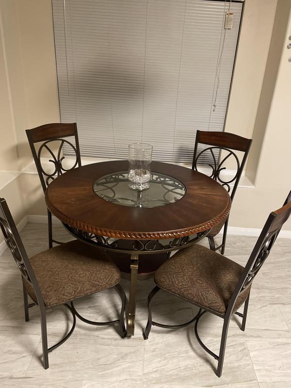 The Glambrey 5 Piece Dining Set from Ashley Furniture comes in a brown Ashley Glambrey Dining Room Table Dining room table with scrolling metal base. incorporating a touch of european influence with its scrolled metal accents, the glambrey dining room table mixes various textural. Manmade wood and veneer lower fixed. Manmade wood, veneer and inset glass. Dining room table with scrolling metal base. dine in old world style with the glambrey 5 piece dining set from. Ashley Glambrey Dining Room Table.
