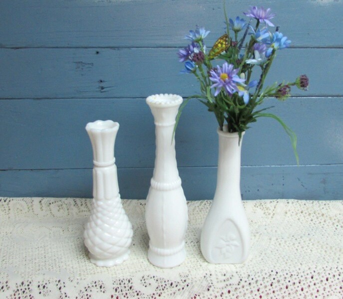 Milk Glass Bud Vases for Weddings Home Décor by BusyOnBlackwood
