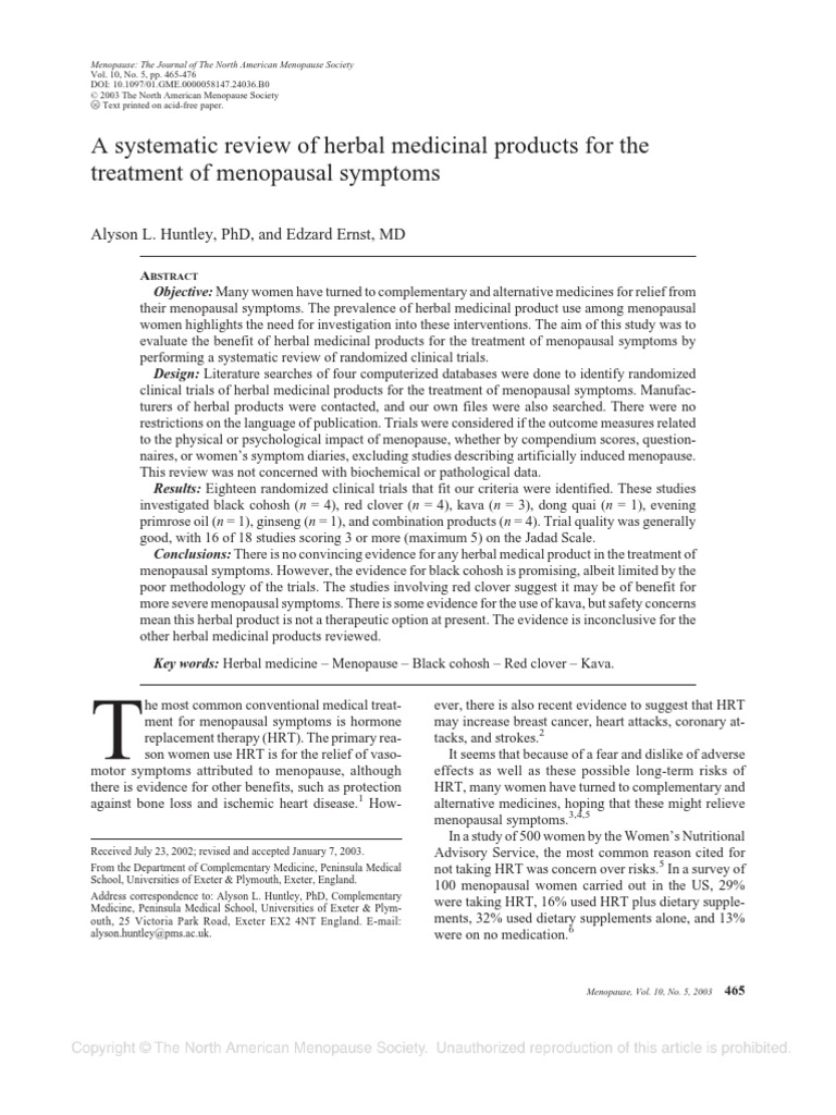 A Systematic Review of Herbal Medicinal Products For The Menopausal