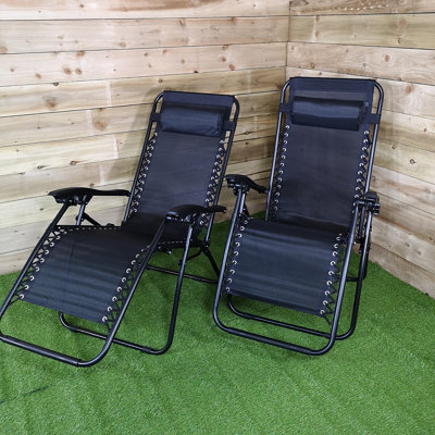 Pair of Multi Position Textoline Garden Relaxer Chair Lounger All Black DIY at B&Q