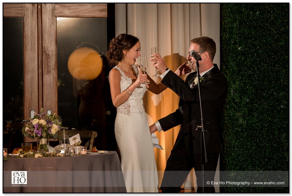 Bride and groom laugh during their toasts at their Hotel Palomar