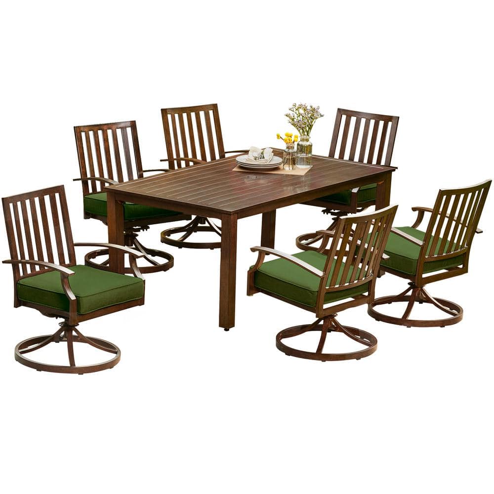 Royal Garden Bridgeport 7Piece Aluminum Motion Outdoor Dining Set with Green Cushions LAKDST722