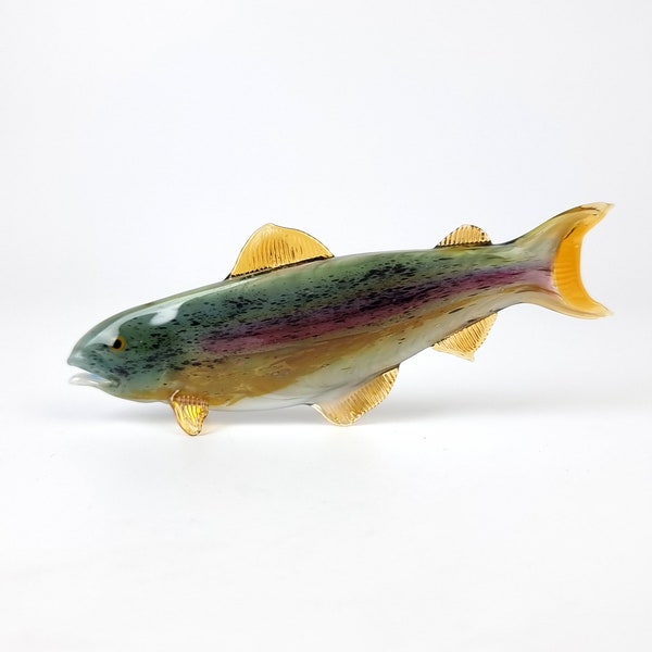 Hand Blown Glass Fish Rainbow Trout Sculpture Etsy Glass Trout Sculpture browse a variety of trout sculptures on etsy, from hand carved wood and metal to blown glass and ceramic. check out our glass trout fish sculpture selection for the very best in unique or custom, handmade pieces from our shops. It comes in crystal clear glass or with up to 4 colors of your choice,. check out. Glass Trout Sculpture.