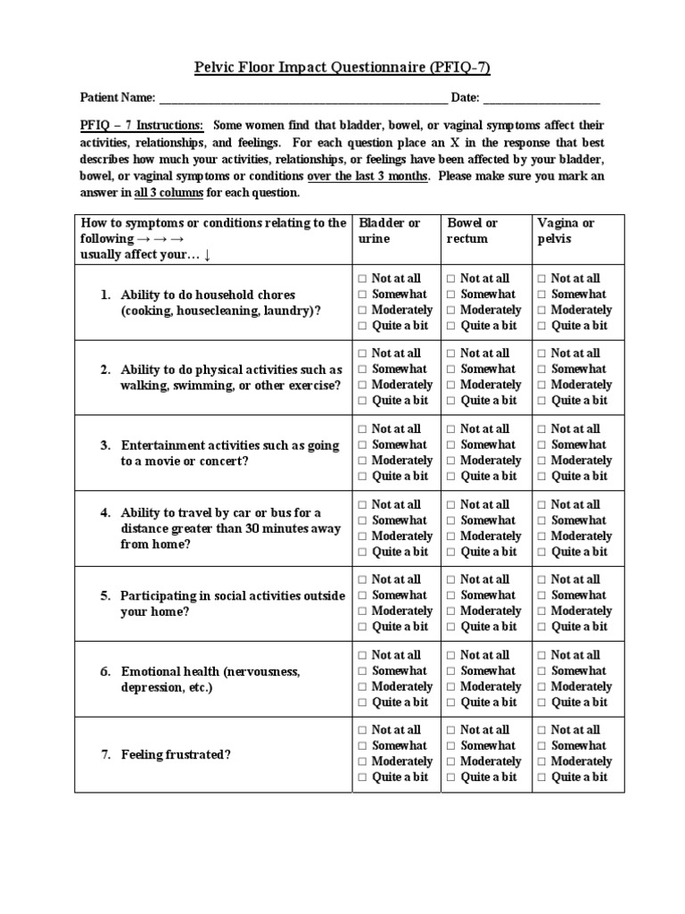 Pelvic Floor Impact Questionnaire PDF Vagina Urinary Bladder