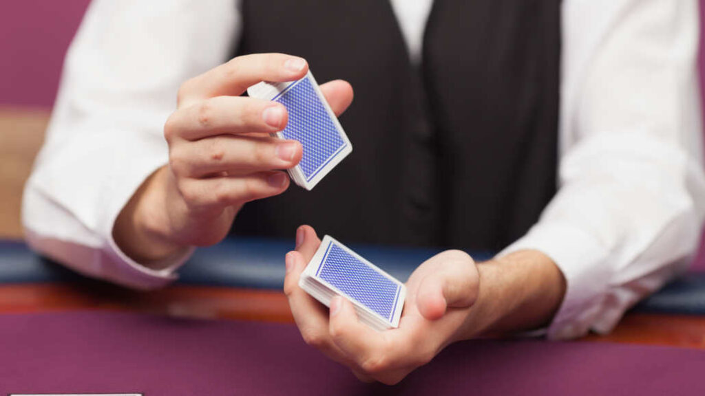 Cards Shuffling Wanted to learn how to shuffle playing cards like a pro? A common shuffling technique is called the riffle, or dovetail shuffle or leafing the cards, in which half of the deck is held in each hand with the. To shuffle a deck of cards reliably, you'll need to make sure that you do more than just a single shuffle,. Cards Shuffling.