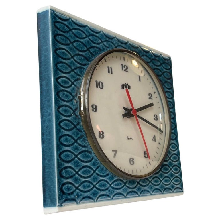 Mid Century German Porcelain Wall Clock in Blue Glaze by Gifa, 1960s For Sale at 1stDibs