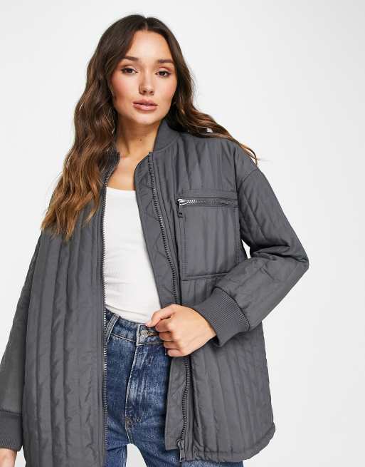 quilted bomber liner jacket in charcoal ASOS