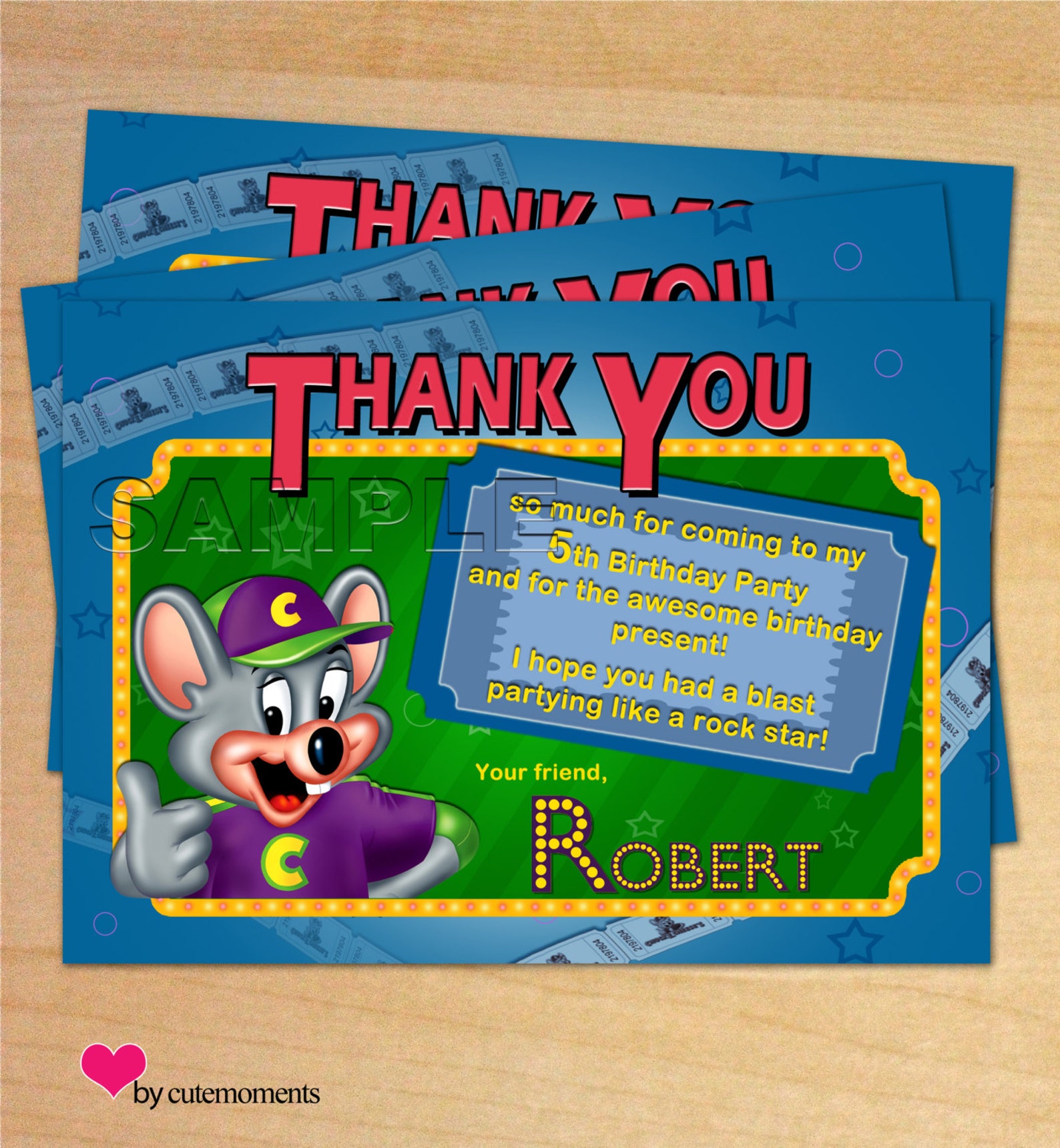 Boy Chuck E Cheese's THANK YOU CARD Digital File Etsy