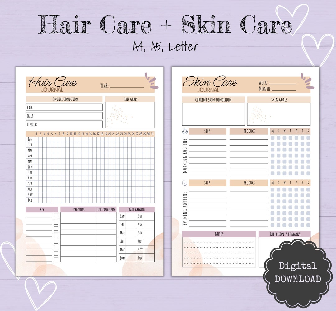 Skin Care Journal Hair Care Journal Printable Self Care Etsy