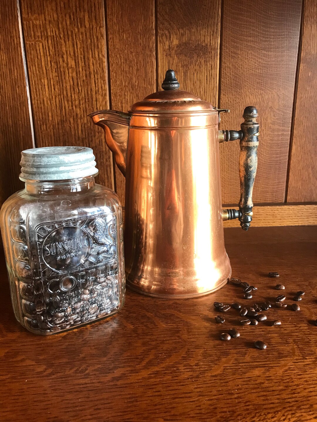 Stunning Antique Copper Coffee Pot by Uptown Vintage Coffee Pot Copper The coffee pot body is made of durable copper and it comes with an ergonomic handle for an easy grip. It does, however, have a tendency to corrode slowly with time. Handcrafted copper pot allows you to brew rich and flavorful turkish coffee just like traditional cafes, with finely ground coffee boiled and. Everything is made of thick copper. Schau. Coffee Pot Copper.