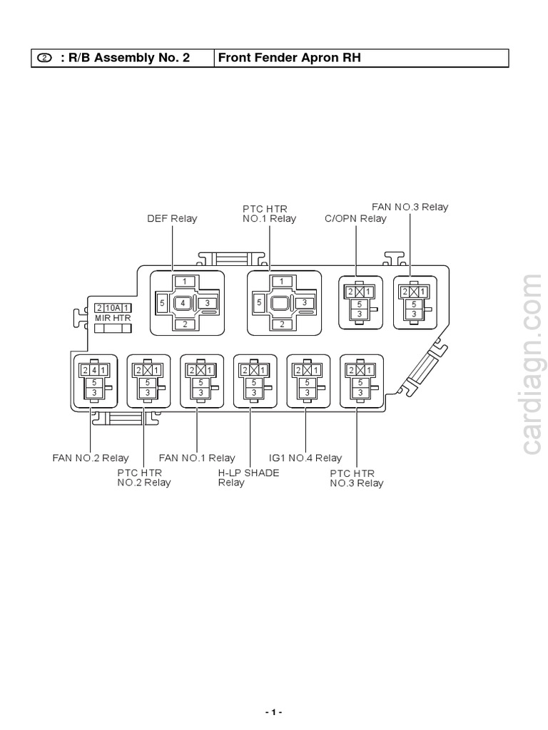 R/B Assembly No. 2 Front Fender Apron RH DEF Relay PTC HTR NO.1 Relay