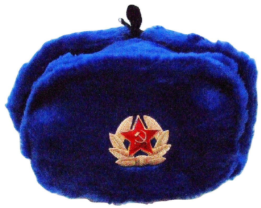 Authentic Russian Blue Ushanka Hat W/ Soviet Red Army Badge Etsy