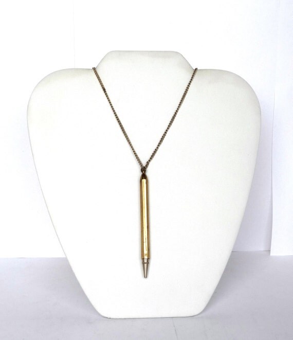 Vintage Long Pencil Necklace Mechanical Pencil Pendant on Gold