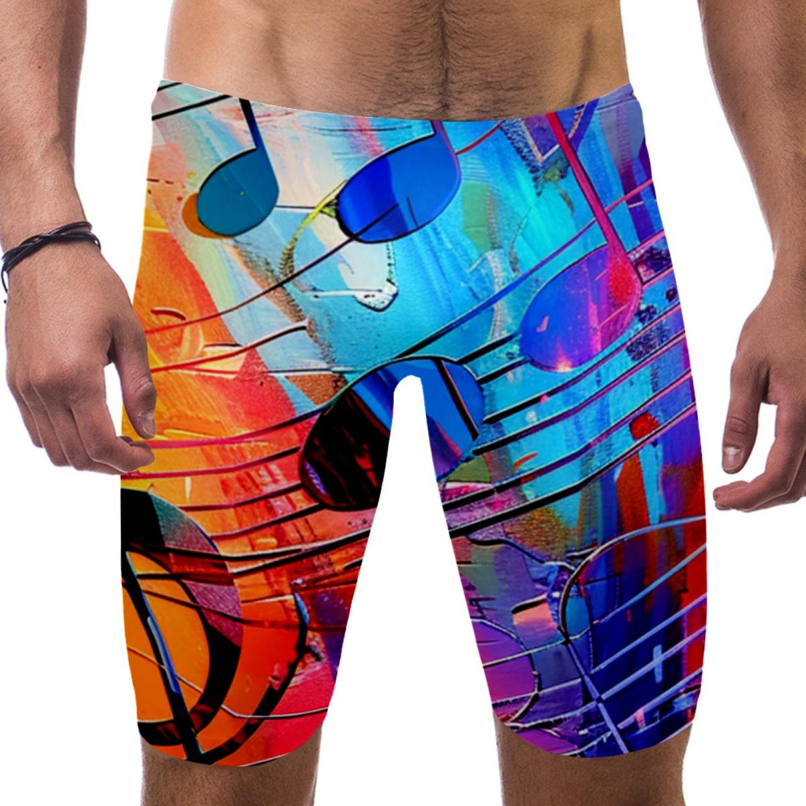 Jammers for Men, Men's Athletic Swimwear Jammers, Music Notes Vintage