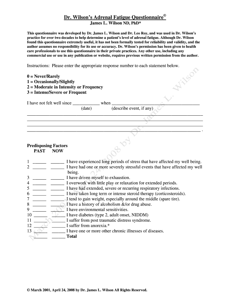 Fillable Online Dr Wilsons Adrenal Fatigue Questionnaire James L Wilson Fax Email Print pdfFiller