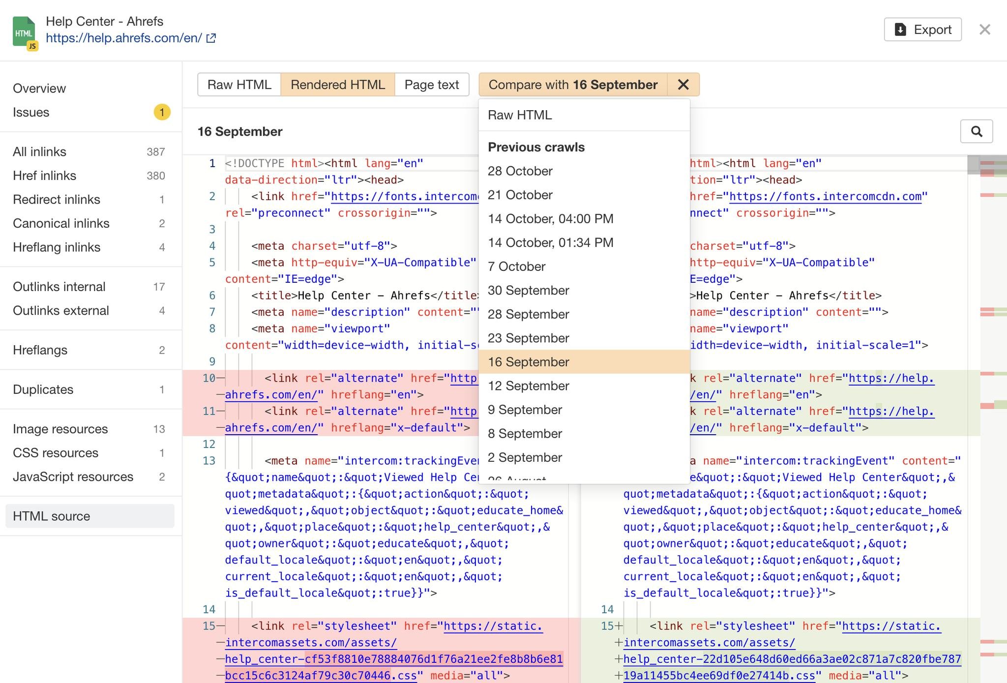 Ahrefs on Twitter "NEW HTML code comparison in Site Audit 🔥 The "URL