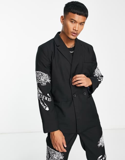 Liquor N Poker oversized double breasted suit jacket in black with