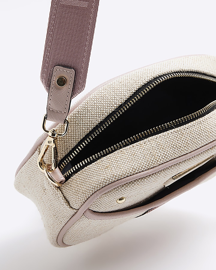 Beige canvas cross body camera bag River Island