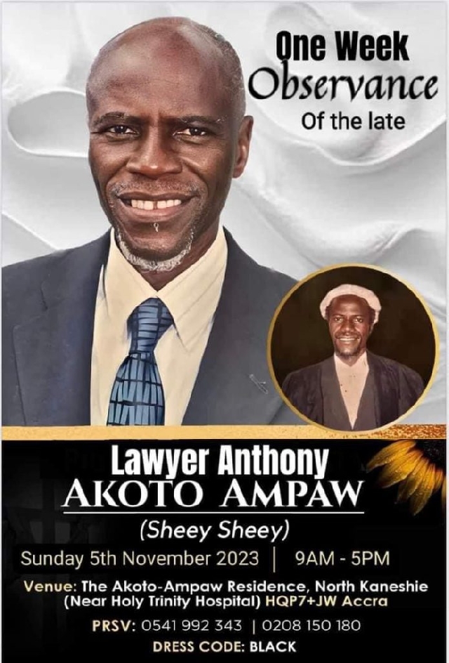 Family, mourners mark Lawyer Akoto Ampaw's one week rememberance