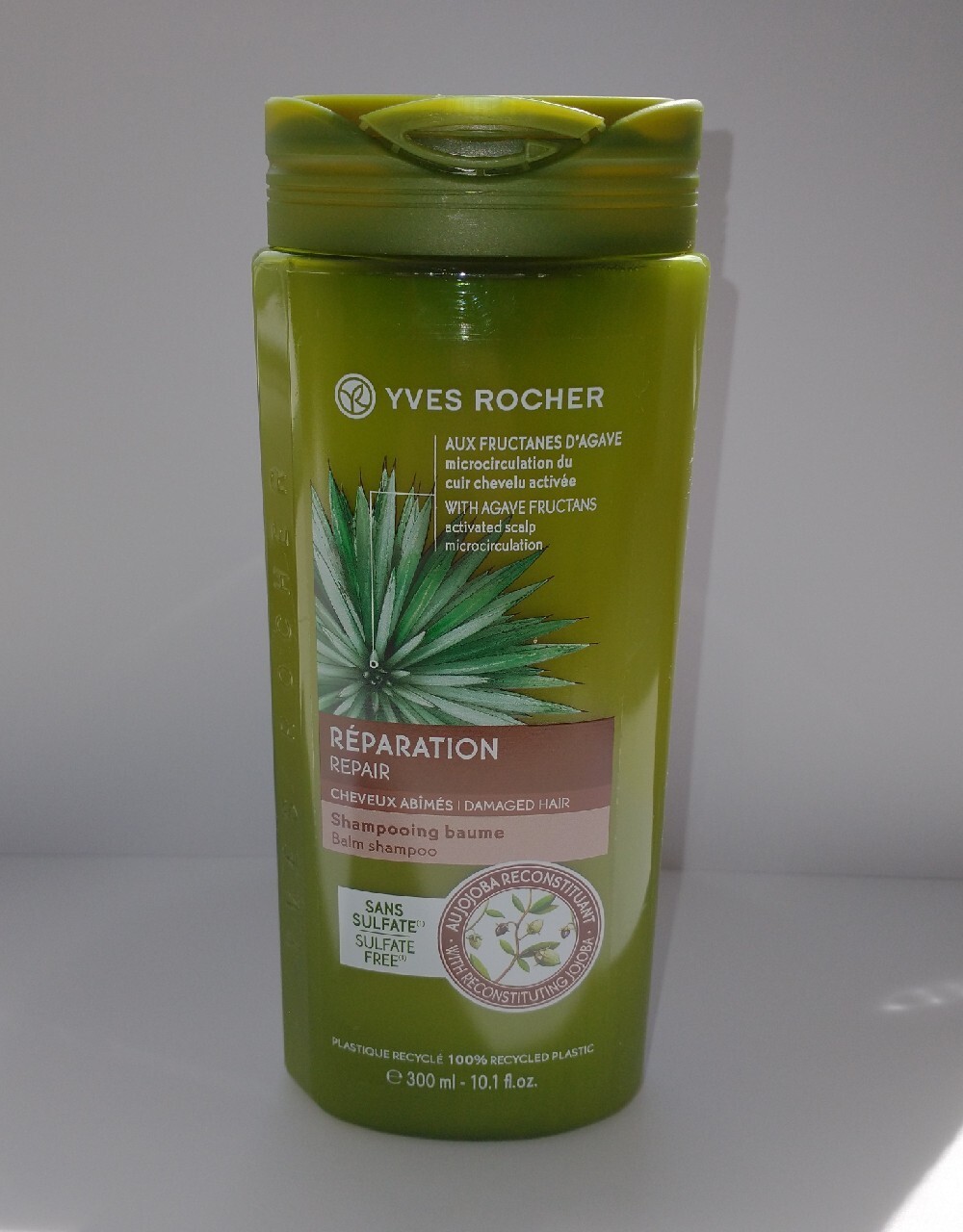 YVES ROCHER/ Shampooing Baume/ Reparation/JOJOBA/ شامبو وبلسم بخلاص Shampooing Jojoba Yves Rocher Formulé sans sulfate * pour les cheveux secs. Il nourrit, répare et renforce sans alourdir. Specially formulated without sulfate for dry and damaged hair, the repair shampoo washes gently and restores the hair fiber. Plus qu’un simple produit de beauté, le shampoing préserve la santé des cheveux et du cuir chevelu. Les shampoings yves rocher sont enrichis en. Enrichi en. Shampooing Jojoba Yves Rocher.