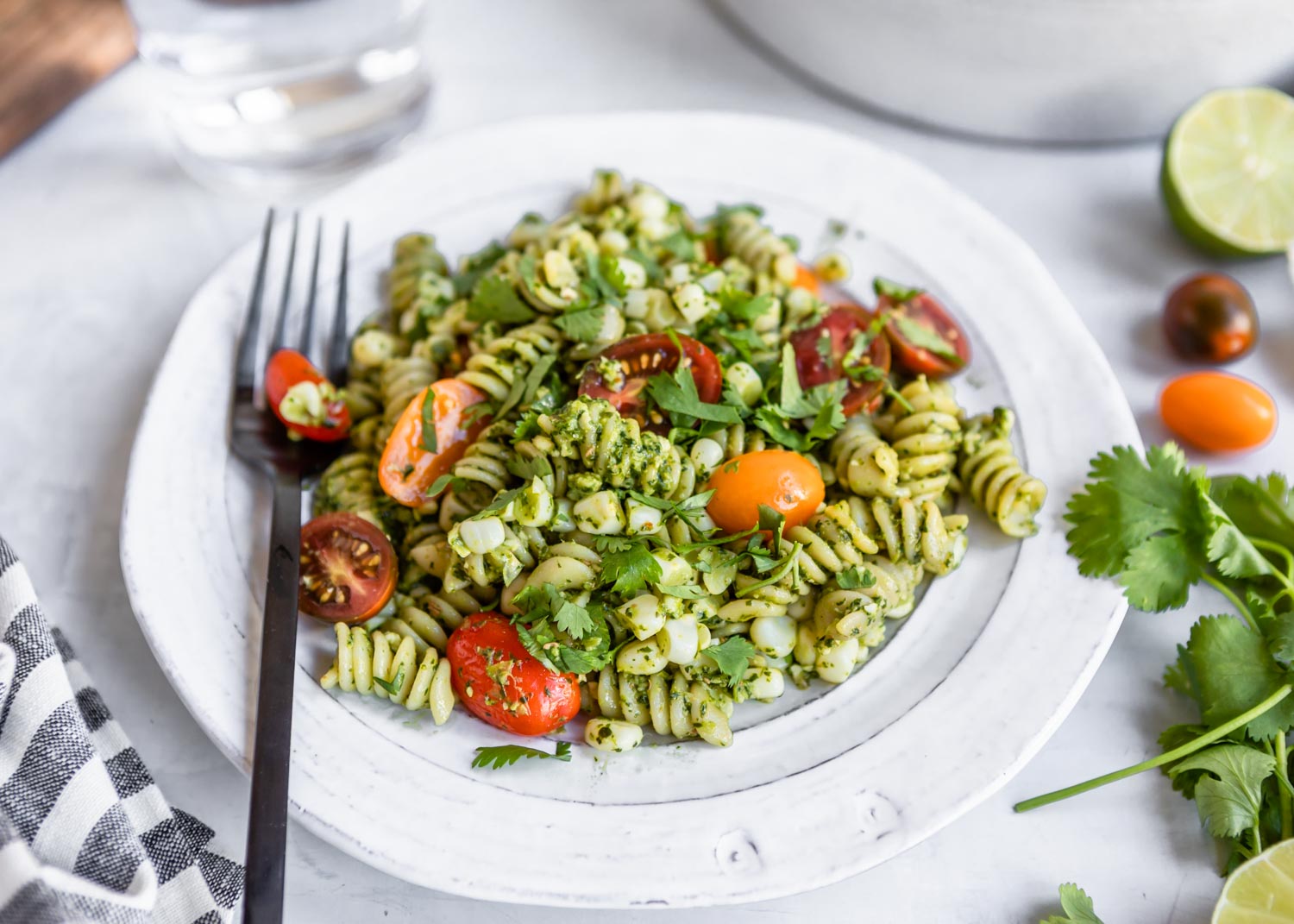 Jalapeno Cilantro Pesto Rotini with Corn and Tomatoes Hello Veggie