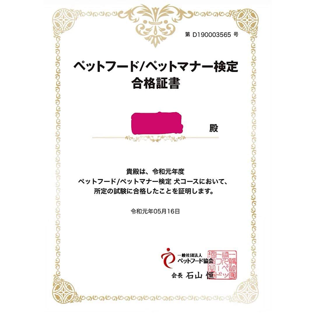五月千和加さんのインスタグラム写真 (五月千和加Instagram)「. 🎉ペットフード/ペットマナー検定㊗️ 試験合格しました💮 ⭐️