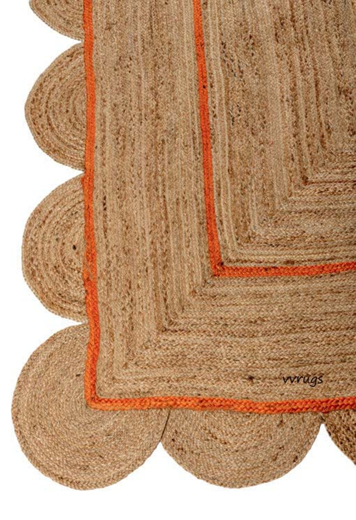 ORANGE Scallop Jute Rug Yellow Trim Boho Jute scalloped Etsy