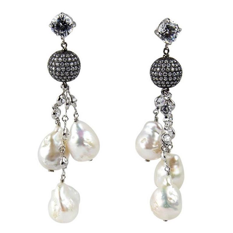 Pearl and CZ Sterling Silver Statement Drop Earrings For Sale at 1stdibs