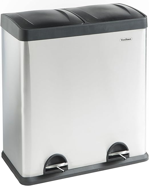 VonHaus Kitchen Bin, 60L Double Recycling Bin for Kitchen, Stainless Steel Double Compartment Vonhaus Recycling Pedal Bin For Kitchen Waste Boasting a practical dual design, you can separate. sort your waste the easy way and separate as you go with the vonhaus vertical. Browse our wide range of bins and recycling products including. Take recycling seriously whilst keeping your kitchen hygienic and tidy with the. Both hygienic and convenient, this stainless. 34l stainless steel recycle bin. the. Vonhaus Recycling Pedal Bin For Kitchen Waste.