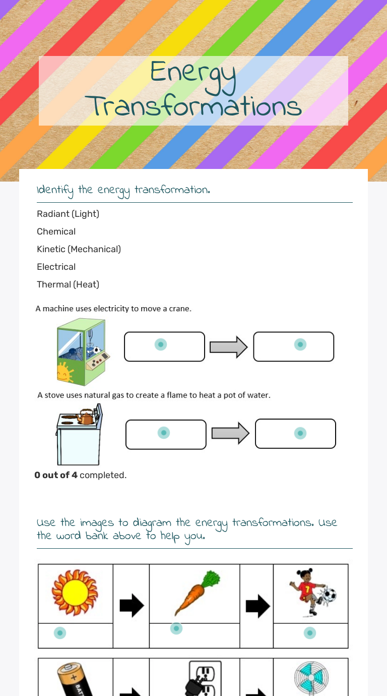 Energy Transformations Interactive Worksheet by Juliane Garza Wizer.me