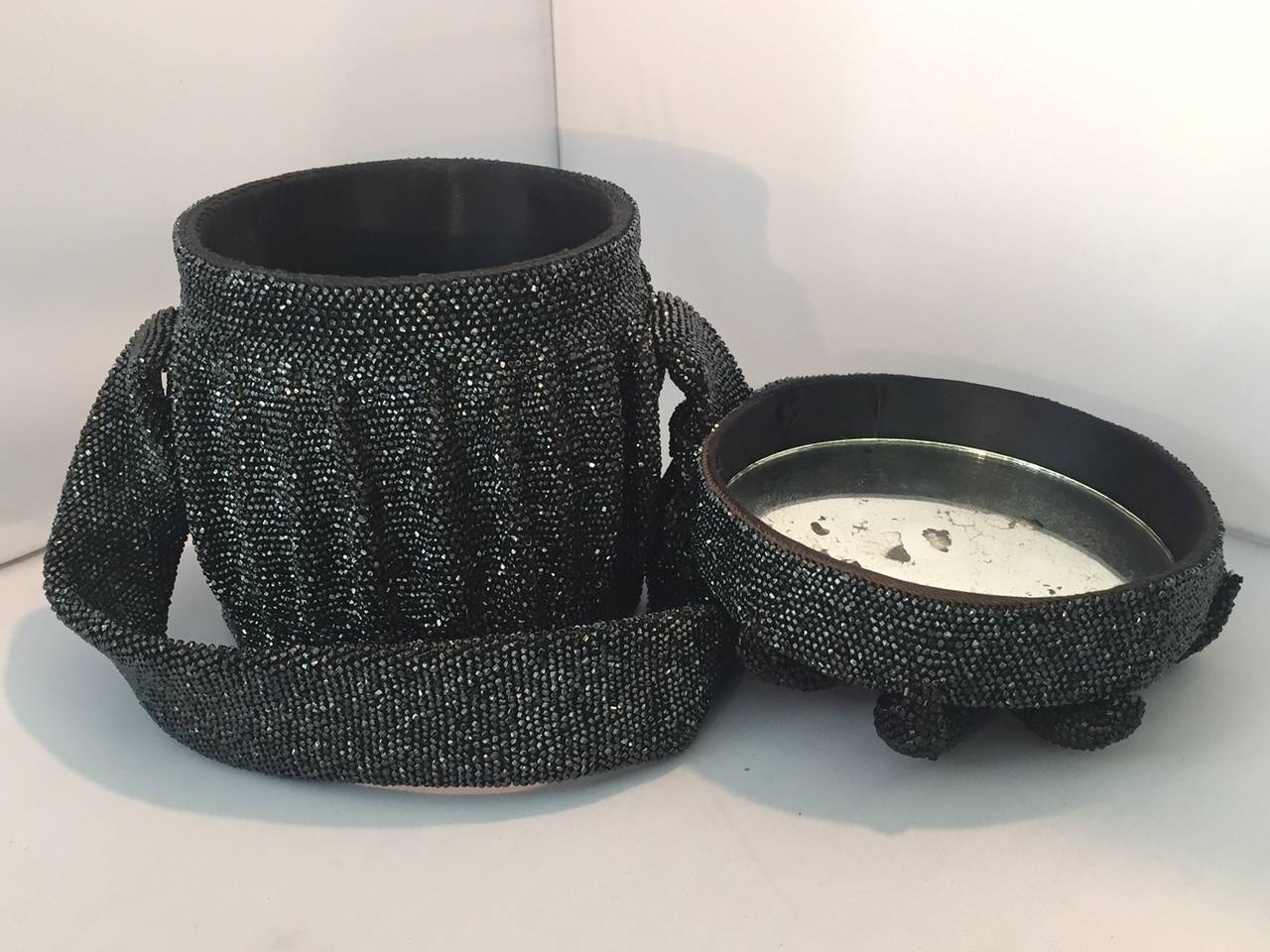 1940s Gunmetal Beaded Barrel Evening Bag w/ "Starfish" Detail For Sale