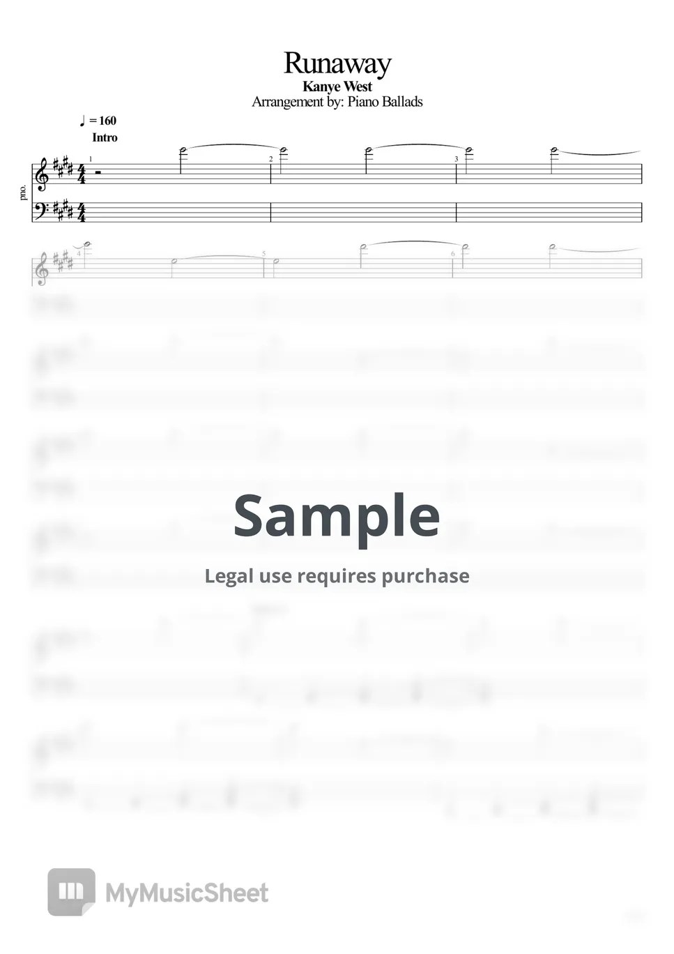 Kanye West Runaway Sheets by Piano Ballads