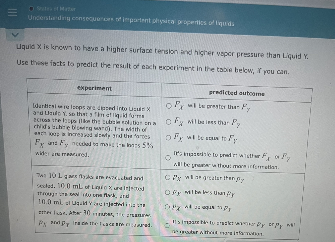 Solved Liquid X is known to have a higher surface tension