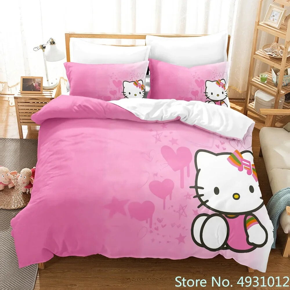 Cute Hello Kitty Love Bedding Set Pillowcase Japanese Anime Bedclothes