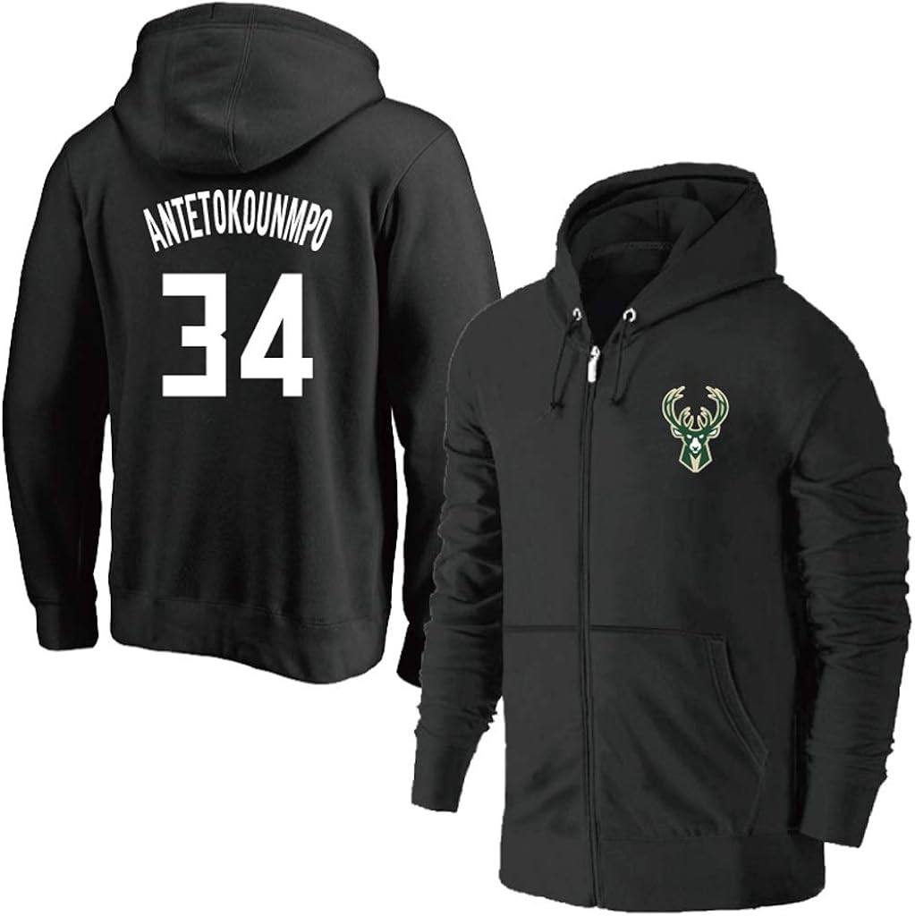 MFsports Milwaukee Bucks Giannis Antetokounmpo 34 Zip up Hoodies Kapuzenober, Hoodie für Herren