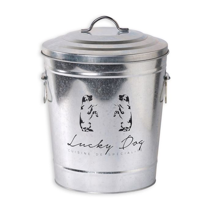Galvanized Steel "Lucky Dog" Pet Food Storage Bin with Lid Bed Bath and Beyond Canada