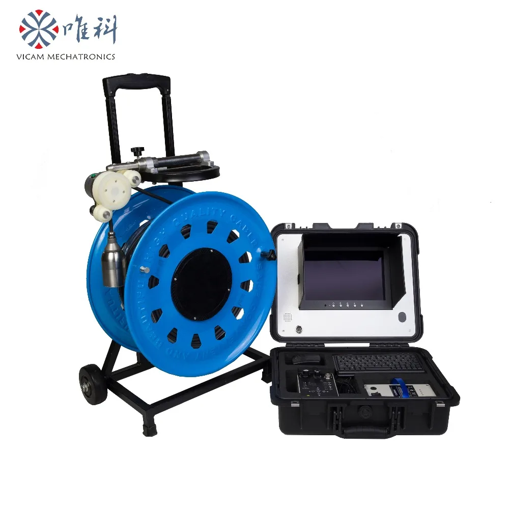 Vicam underwater borehole video inspection camera 300m water well Water Well Inspection Camera Our industry leading digital inspection cameras and water proof consoles use the latest technology to lead the industry in underwater applications. This fully integrated system sets up easily with one operator to streamline well evaluations and minimize operating costs. With the help of our inspection camera systems, you can thoroughly survey and examine the inside of any well or borehole. Water Well Inspection Camera.